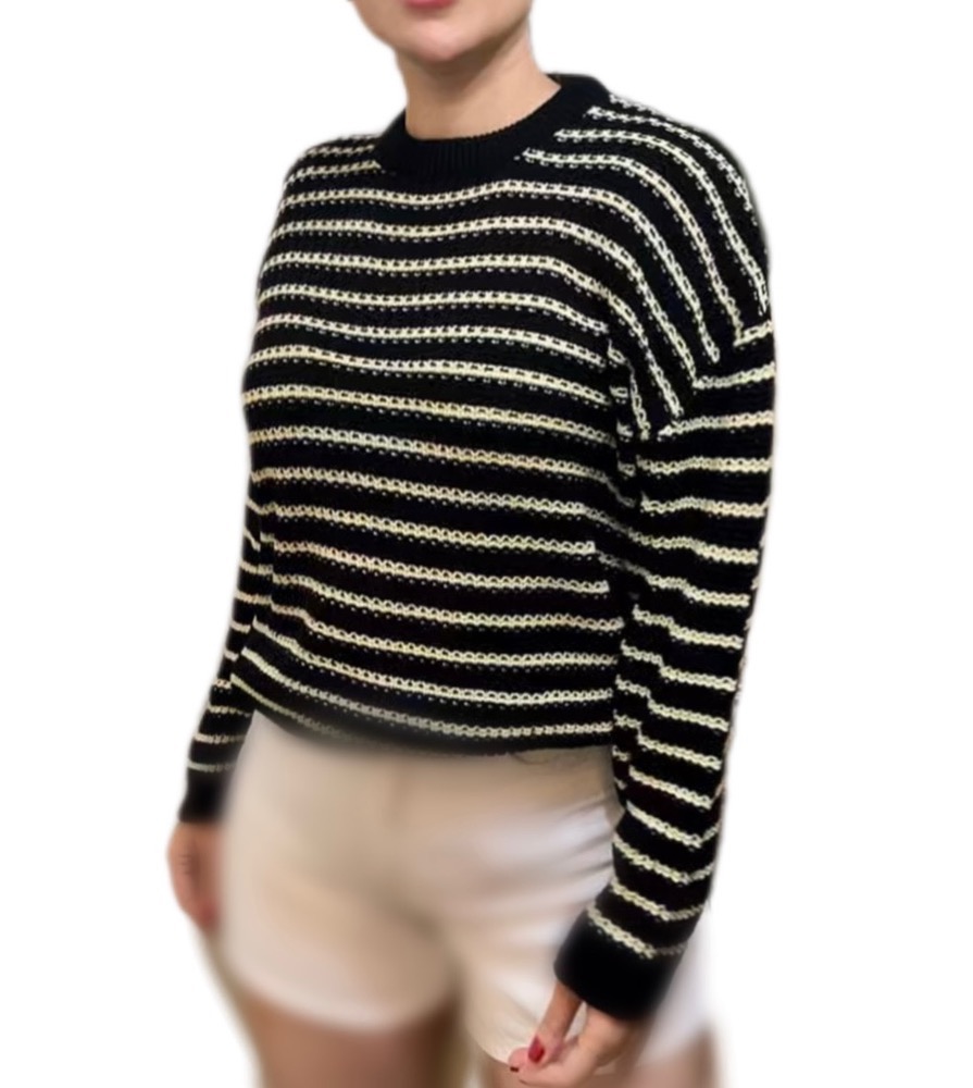 بلوز بافت زنانه برند Bisou با دکمههای گل فلزی، بافت نرم و کشسان و تنخور مرتب.