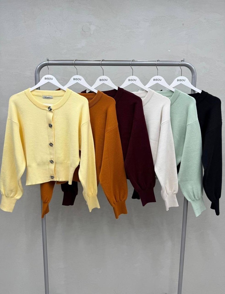 کاردیگن بافت ترک برند Bisou با دکمههای لاینی فلزی، بافت نرم و تنخور شیک. فریسایز مناسب سایزهای ۳۶ تا ۴۴.
