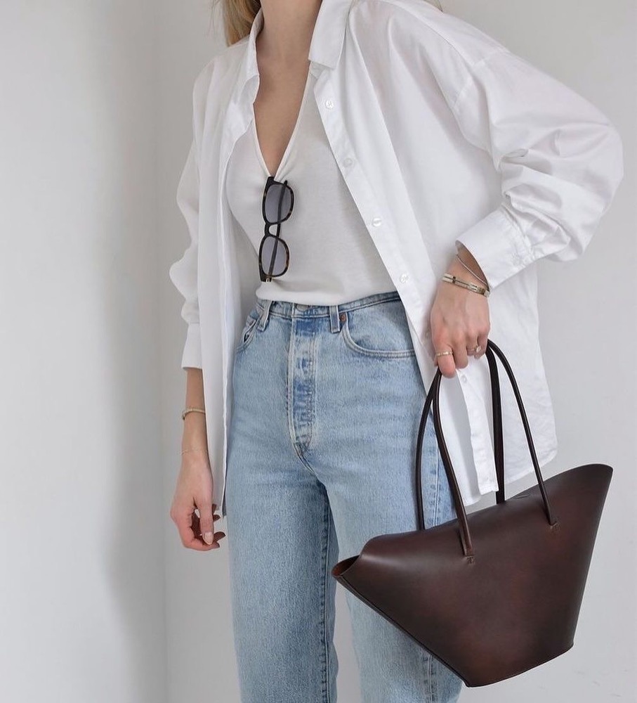 شومیز سفید بیسیک، فریسایز و مناسب استایل روزمره. قد ۷۰ سانتیمتر و الگوی آزاد؛ مناسب برای استایلهای مینیمال و لایه لایه