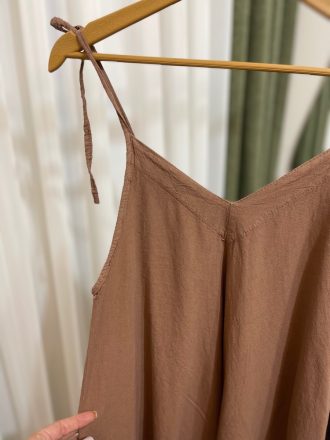 سارافون ماه، انتخابی ساده و در عین حال شیک برای روزهای گرم سال است. این سارافون از الیاف طبیعی و لطیف دوخته شده تا پوست شما در طول روز احساس راحتی و سبکی داشته باشد. طراحی آزاد و برش مینیمال آن باعث میشود بهراحتی با شومیز انواع کت استایل میشه حتی بهتنهایی پوشیده شود.