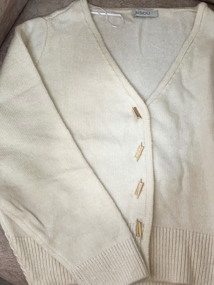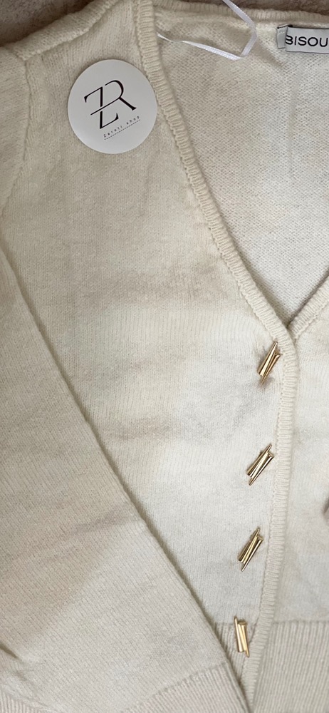 کاردیگن بافت ترک برند Bisou با دکمههای لاینی فلزی، بافت نرم و تنخور شیک. فریسایز مناسب سایزهای ۳۶ تا ۴۴.