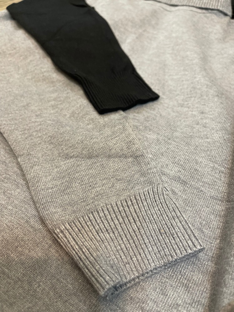 مدل یقهاسکی آن علاوه بر حفظ گرما، استایلی مینیمال و کلاسیک میسازد. ترکیب رنگهای پرطرفدار طوسی و مشکی، باعث میشود بهراحتی با انواع شلوار و پالتو ست شود.